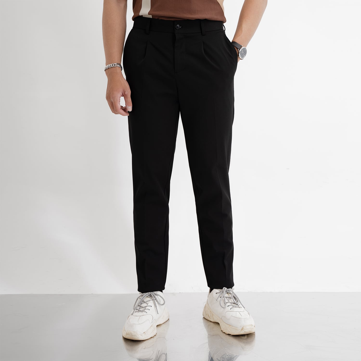 - Tính đa dạng: Phù hợp với các bạn Nam yêu thích sự thoải mái không quá ôm như form Skinny. Đối với form Slimfit sẽ giúp cho các chàng trai có những khuyết điểm về chân sẽ che đi khuyết điểm của mình.