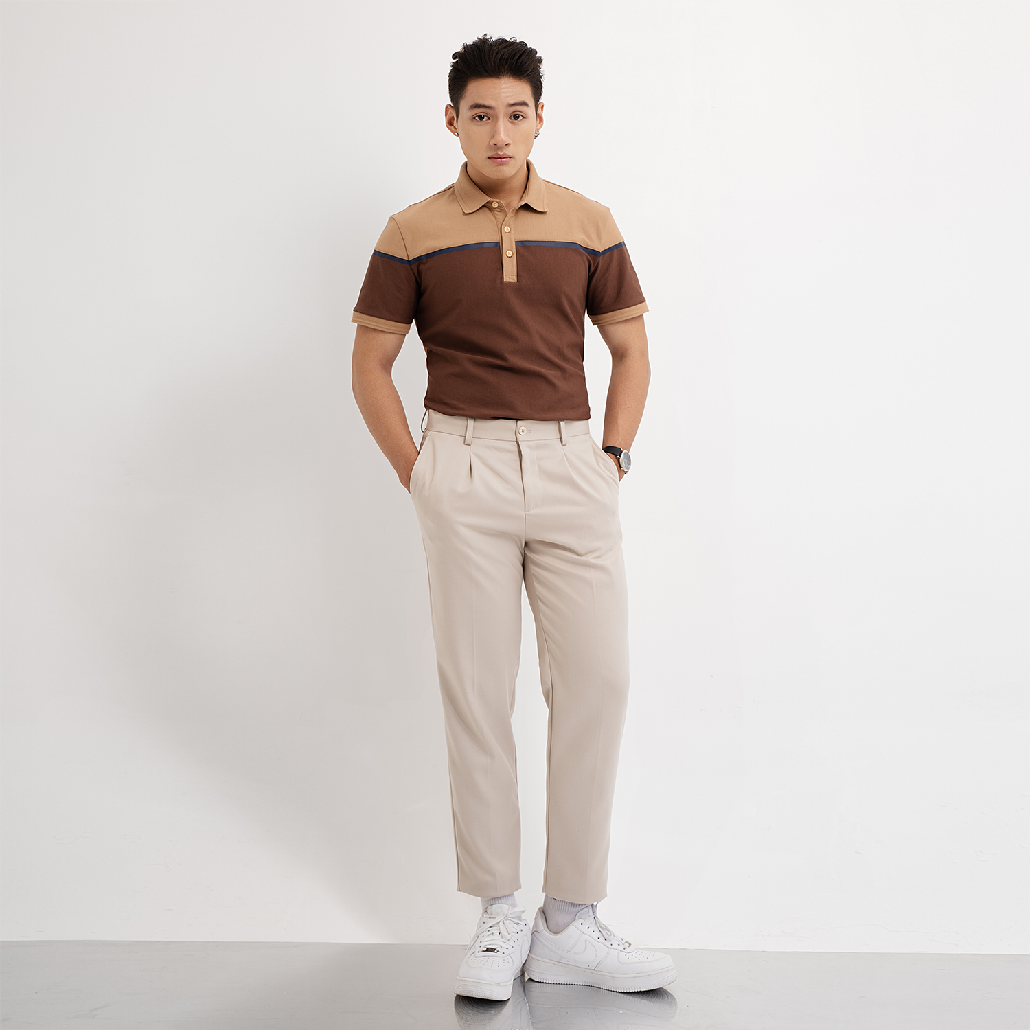 - Gợi ý Mix & Match: Các bạn Nam có thể đi kèm với các sản phẩm áo thun / áo polo phối kèm với áo khoác ... vừa cá tính, vừa năng động không kém phần lịch sự